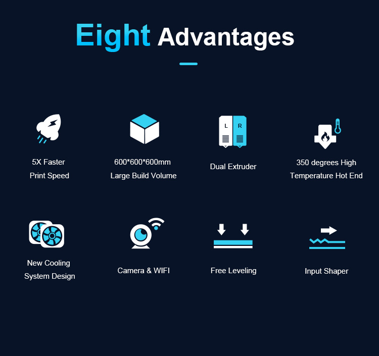 MINGDA MD-600D var drukāt vienu lielu vai vienlaikus vairākus mazākus modeļus no dažādu tipu vai dažādu krāsu kvēldiegiem.