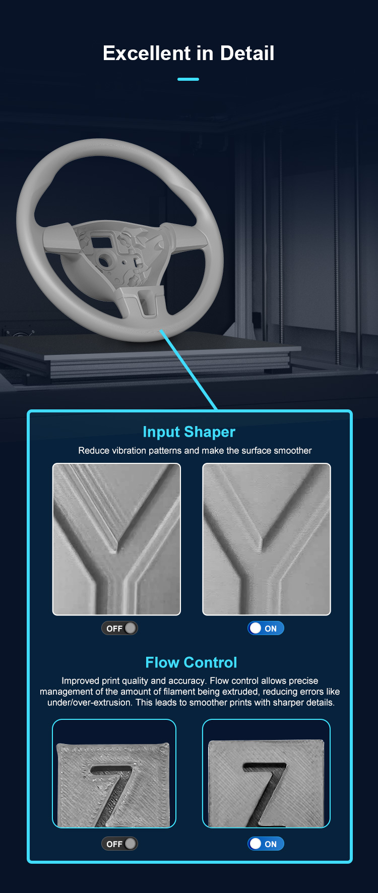 Printerim ir iespējama attālinātā pārraudzība. Tas var droši darboties automātiskā režīmā 3 D printeru blokos cehā no viena vadības centra.