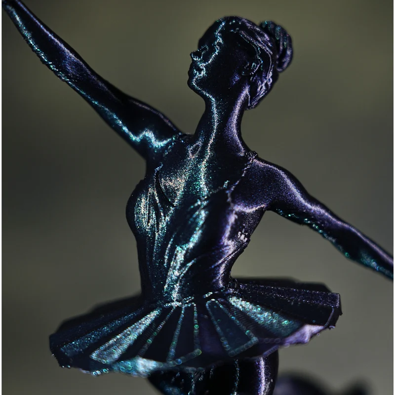 This PETG-based Galaxy blue filament with the addition of bright pigments creates a captivating color-changing effect, alternating shades of dark blue, purple and green, creating a cosmic illusion.